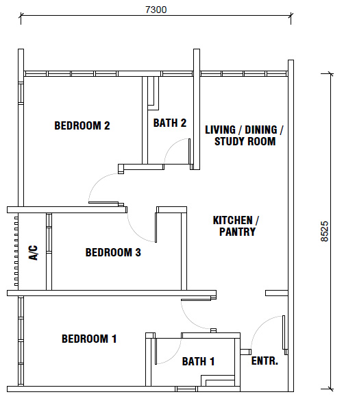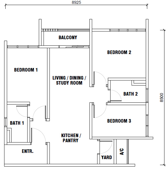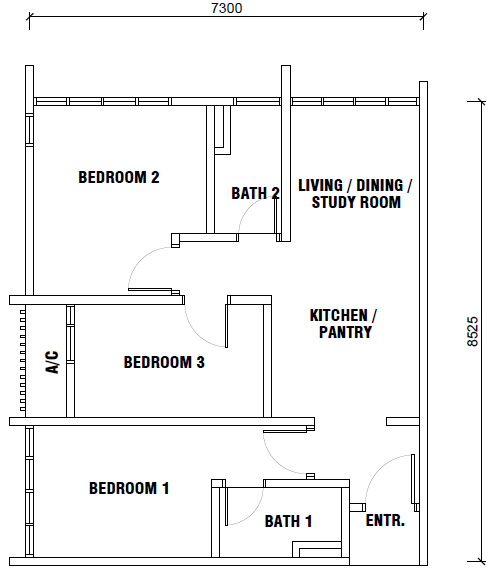 Dual-key 3 bed 2 bath – 652 sqft (Foreigner eligible)